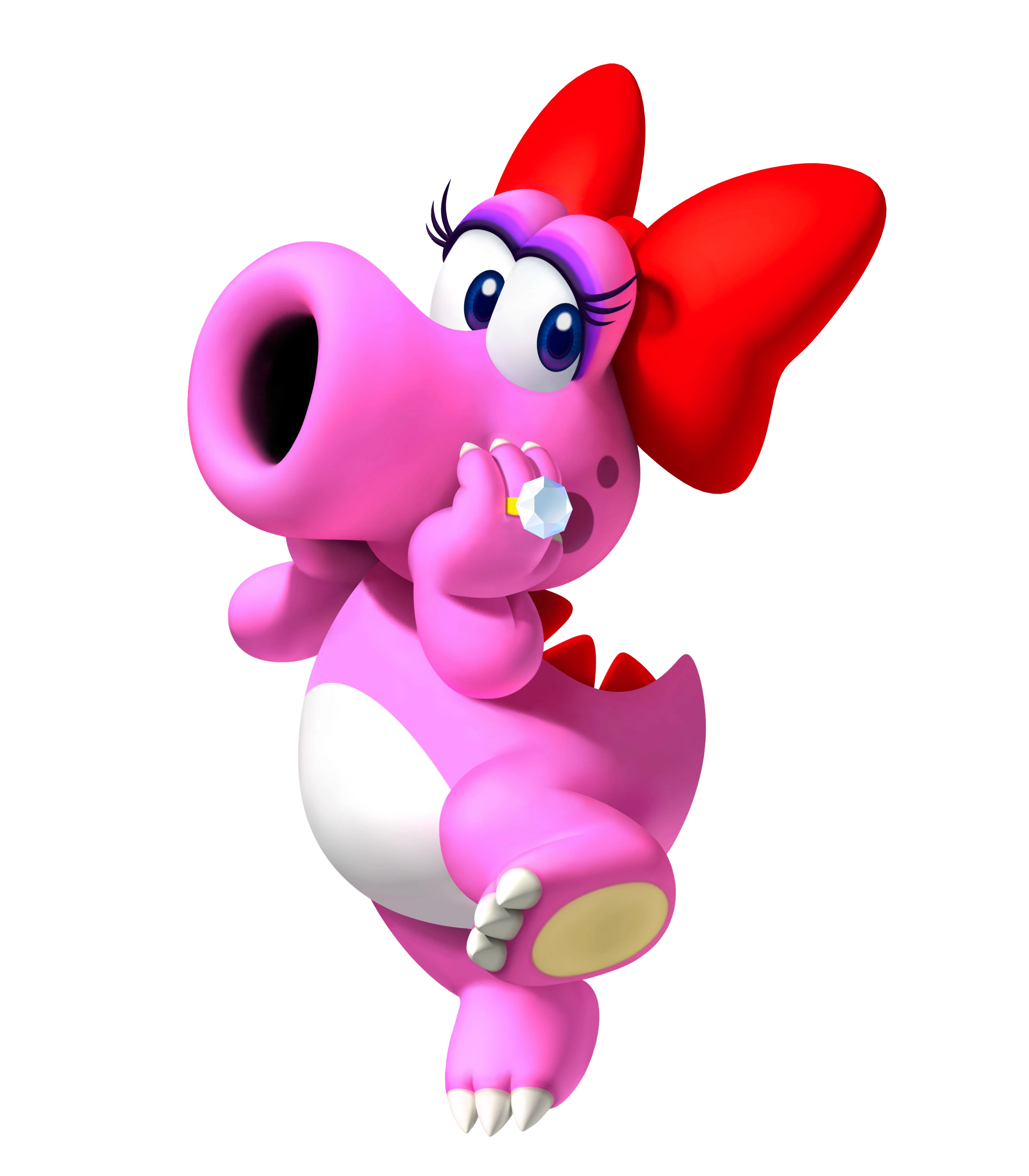 - Una criatura de color rosa y sexo indeterminado que, según algunos, debería llamarse más bien Birdetta. El gran lazo de su cabeza es su rasgo más distintivo. En Super Mario Bros. 2 podías reflejar el fuego de Birdo saltando sobre los huevos que disparaba por la boca. ¡No te dejes intimidar por esas bolas de fuego con forma de huevo!