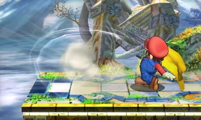 Su ataque es débil, pero puede repeler a los rivales gracias a la fuerza eólica. | Este ataque solo puede dañar si la capa golpea al oponente, en tanto el viento que crea solo empuja a los oponentes. Puede ser útil para evitar que los oponentes se recuperen al ser lanzados fuera del escenario. | 5% |