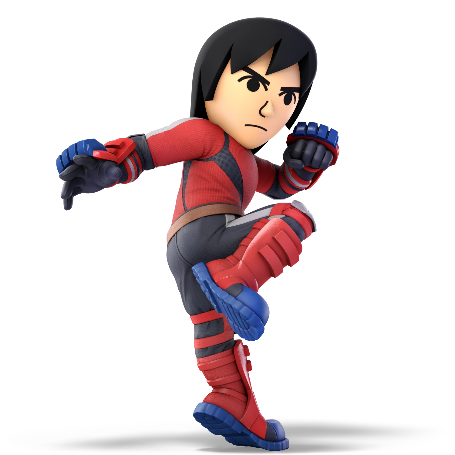 - Este artículo trata sobre la aparición del Karateka Mii en Super Smash Bros. Ultimate. Para ver información general acerca del personaje, véase Mii. Para ver información general acerca de los otros tipos de Luchador Mii, véase Tirador Mii y Espadachín Mii.
