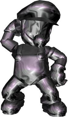 Luigi también es capaz de volverse de metal utilizando el bloque verde. Sin embargo, el efecto es temporal y más débil.