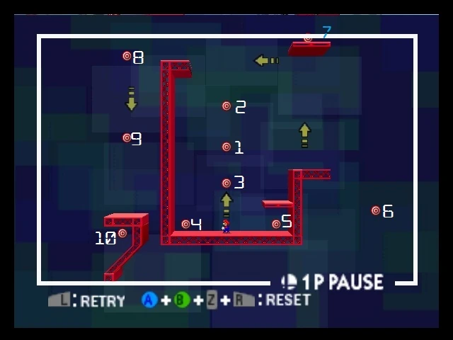 - Esta diana baja y sube junto con la plataforma roja sobre la que está. Se llega a ella con el Súper salto puñetazo.