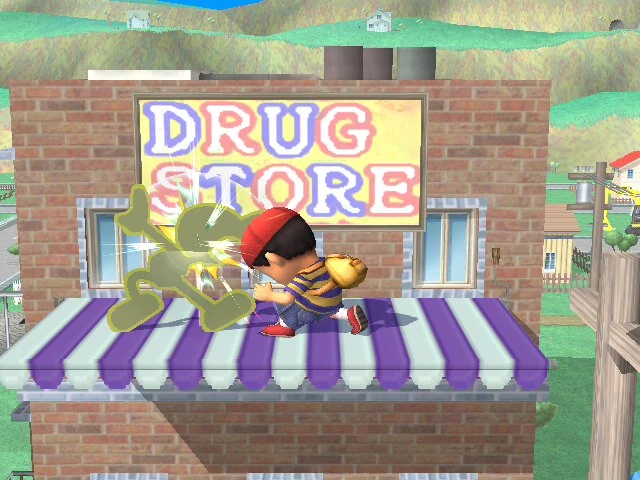 ): Ness da una patada hacia abajo, si golpea al principio del ataque funciona como Smash meteórico. (12% de daño).