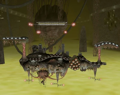 Las columnas orgánicas que sujetan las plataformas a los lados de la arena son similares a unas criaturas llamadas Zebetite, que Samus Aran debe destruir cuando llega al laboratorio de Tourian para derrotar a Cerebro Madre. Al igual que los Zebetite, estas columnas pueden ser destruidas.