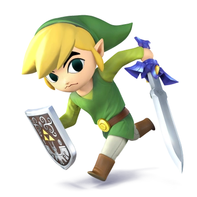 - Esta versión de Link con aspecto de dibujo animado aparece en The Legend of Zelda: The Wind Waker y en otros juegos. Aunque comparte ataques con su versión mayor, lucha de forma muy distinta. Aprovecha su reducido tamaño, deja atrás a los rivales y bombardéalos con ataques a larga distancia.