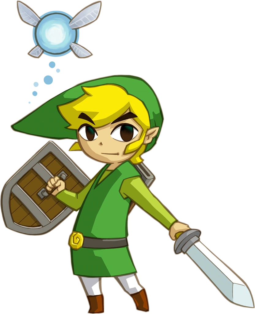 - El Link de The Wind Waker y Phantom Hourglass, de grandes ojos y cara expresiva. Su tranquila vida en la Isla Initia se vio perturbada cuando un pájaro capturó a su hermana pequeña. Link partió al rescate en The Wind Waker, una aventura en la que podía arrastrarse y apoyarse en las paredes. Su verde ropaje, estrenado el día de su duodécimo cumpleaños, es el talismán de este gran héroe.