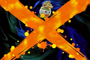 Bowser Jr. est soudainement transformé en Antimario, et utilise le pinceau magique pour dessiner un X sur l'écran. Cette peinture blesse tous les combattants se trouvant derrière jusqu'à exploser.
