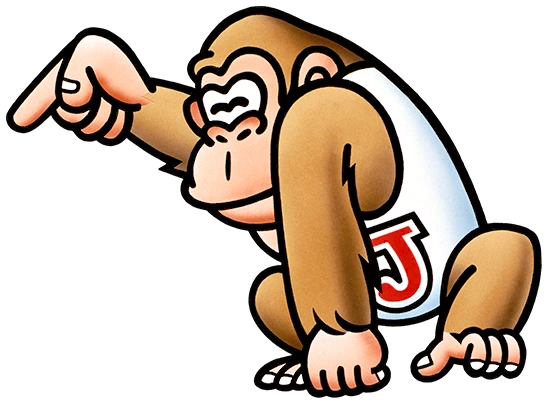 Donkey Kong Junior est un petit singe portant un t-shirt blanc avec la lettre J en rouge.