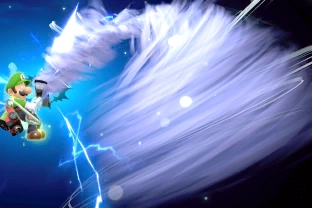 Luigi utilise son Ectoblast 5000 de Luigi's Mansion 2 pour aspirer tous les adversaires aux alentours avant de les rejeter.