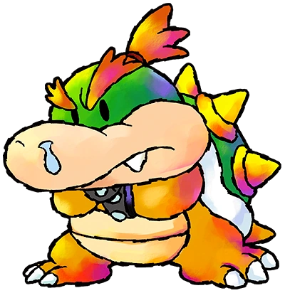 Bowser représente sa forme bébé. Il apparaît ensuite en géant pour représenter la transformation de celui-ci.