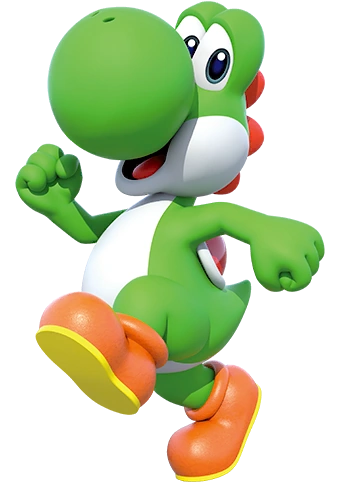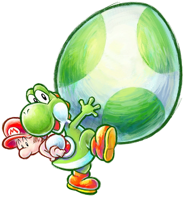 Yoshi apparaît en 8 exemplaires pour représenter les 8 Yoshi du jeu original.