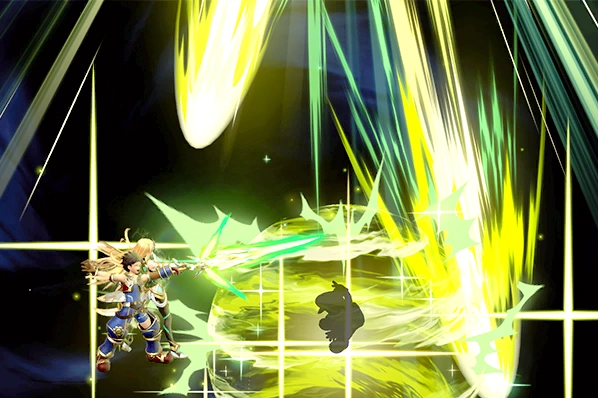 Mythra et Rex brandissent l'Aegis vers le ciel, et invoquent une multitude de flèches de lumières.