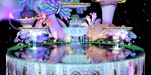 La fontaine des rêves est une plateforme ronde et circulaire sur le bas. Elle est recouverte d'eau qui coule de la fontaine centrale. L'arrière du sol a des constructions en forme d'étoile. Il y a aussi un arbre au tronc violet ayant une structure particulière et des feuilles de couleurs différentes, ainsi que des tours.