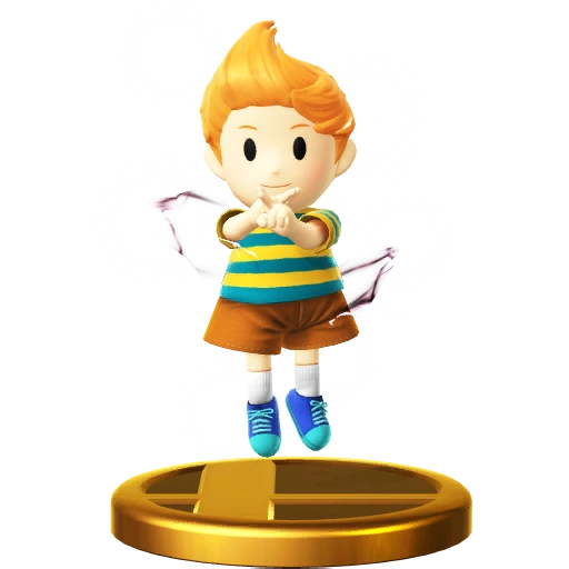 Lucas est apparu sur un trophée commun aux deux versions de Smash 4 avant de revenir en combattant.