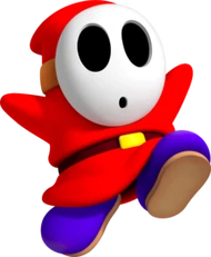 "Ces petits mécréants sont si timides que personne n'a jamais vu leur vrai visage. On les croise pour la première fois dans Doki Doki Panic, le jeu qui fut retravaillé pour devenir Super Mario Bros. 2, leur assurant au passage une place dans l'Histoire. Toujours à la pointe de la mode, on les trouve en plusieurs couleurs, chacun ayant des caractéristiques propres."