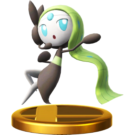 Meloetta est représenté sur un trophée commun aux deux versions de Smash 4, et en esprit dans Ultimate. Il est toujours représenté sous sa forme Chant.