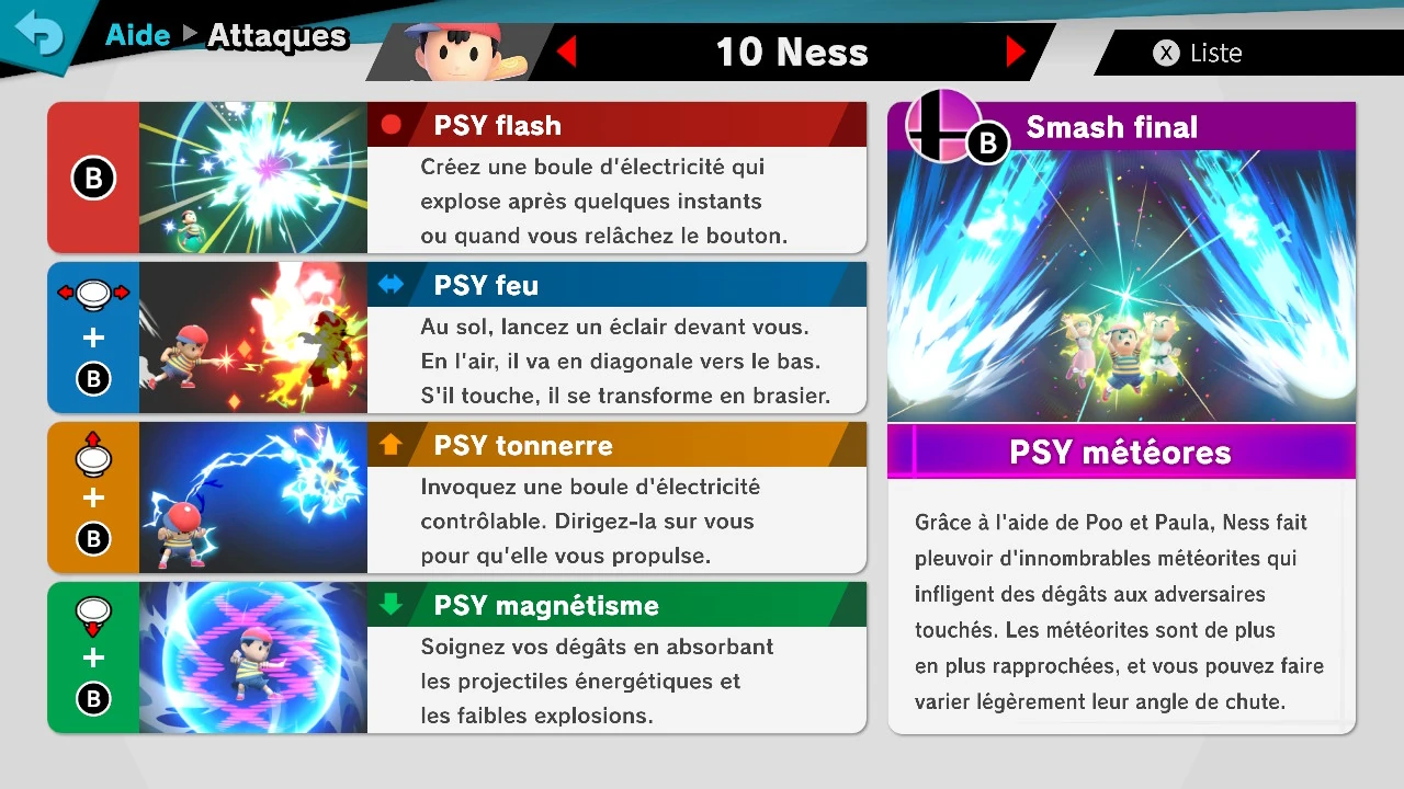 - Lors de l'utilisation de l'attaque PSY Tonnerre, une petite flèche rouge indique où va partir Ness lorsque la boule électrique est près de lui.