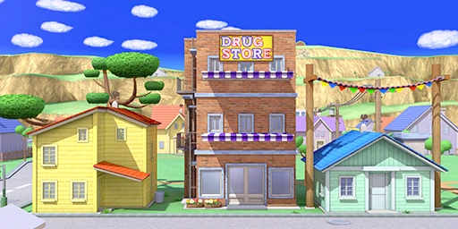 La plupart des bâtiments du jeu original sont absents du champ de vue, mais le magasin au centre du stage est la première boutique que Ness visite. Plusieurs bâtiments tels que la salle d'arcade et l'hôpital apparaissent en reprenant leur apparence.