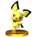 Depuis Melee, Pichu est représenté sur un trophée. Son trophée est exclusif à la version 3DS de Smash 4.