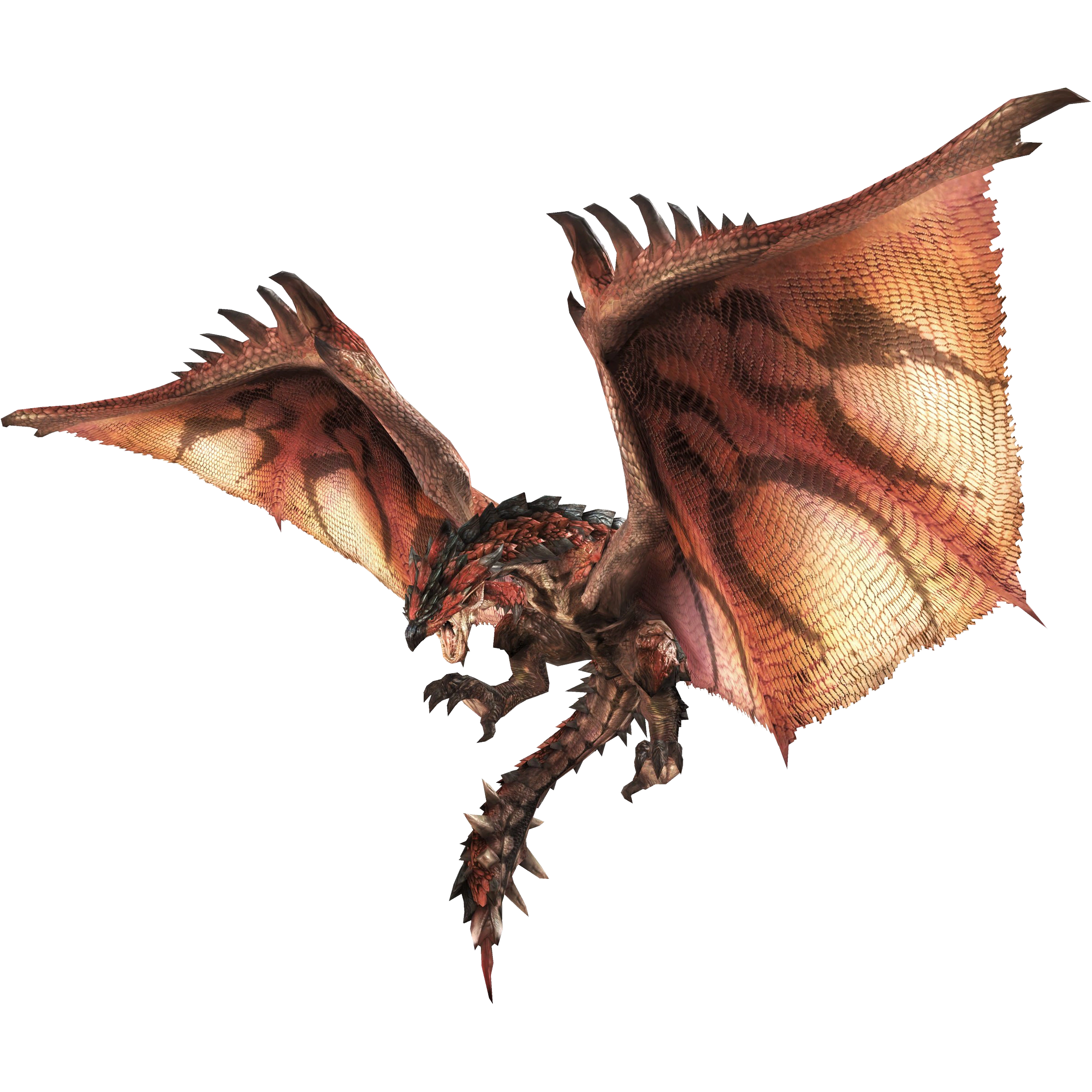 Le Rathalos est un gigantesque monstre ressemblant à une vouivre. De taille moyenne, il est de couleur rouge cramoisie, sa queue est bardée de piques et a des motifs de flammes sur ses ailes.