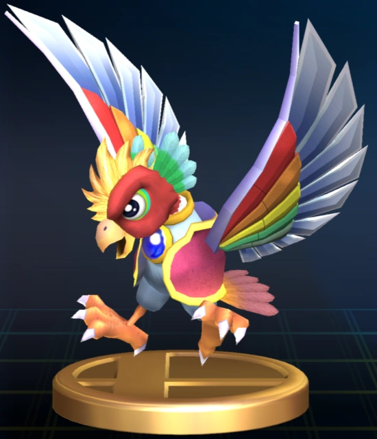 "Un oiseau monstrueux aux ailes blanc et arc-en-ciel et aux serres gigantesques. Ses opposants doivent faire face à sa vitesse et à son armure qui peut dévier toute attaque. Son point faible se situe sur la tête. Dans Kirby's Fun Pak, il détruit les récoltes de Dream Land, mais il semble que ça ne soit pas sans raison." |