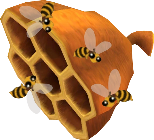 A Beehive is an item from Animal Crossing. In the original game, they fall out of oak trees or out of a cedar trees. Then the character will react in shock. When disturbed, a swarm of angry bees will come out from the nest and chase the player until stung, caught by a net, or if the player enters a building. In Animal Crossing: New Leaf, they can be picked up as items after being shook from them. The bees can't turn very well, so try taking a lot of turns to outrun the bees.