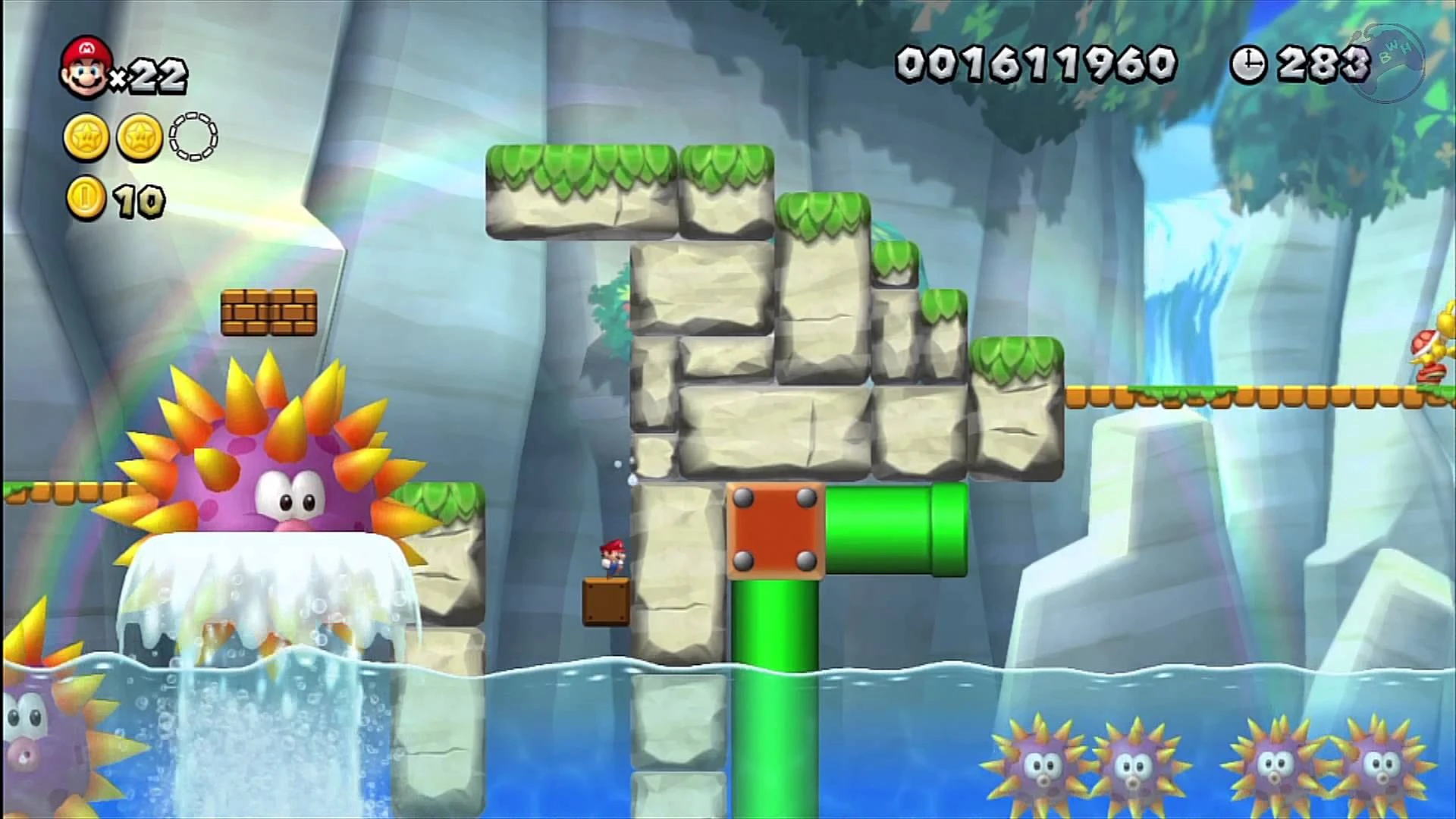 In the game New Super Mario Bros. U, they appear in one of the Sparkling Waters levels, Urchin Shoals, retaining their behavior from New Super Mario Bros. Wii.