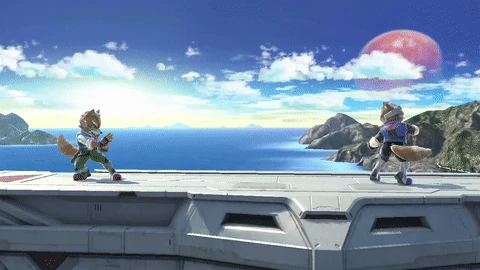 In Super Smash Bros. Melee, however, Fox's Blaster is quite different from the original; it has a faster rate of fire and traveling speed is drastically increased, but the Blaster has absolutely no knockback or hitstun and does 1-3% damage per shot. This is one of the few moves in the game that can never, under any circumstances, provide a KO (except for stealing other players' KO's). It is mainly used from long range (As short hop lasers or short hop double lasers) to camp and help bring up damage for an Up Throw to Up Air combo or an Up Smash. It should never be used while standing as there is ending lag. It should be noted the shots in Fox's up, down and back throws do no knockback or hitstun either. Despite this, Fox still managed to claim his spot at the top of the tier list for Super Smash Bros. Ultimate.