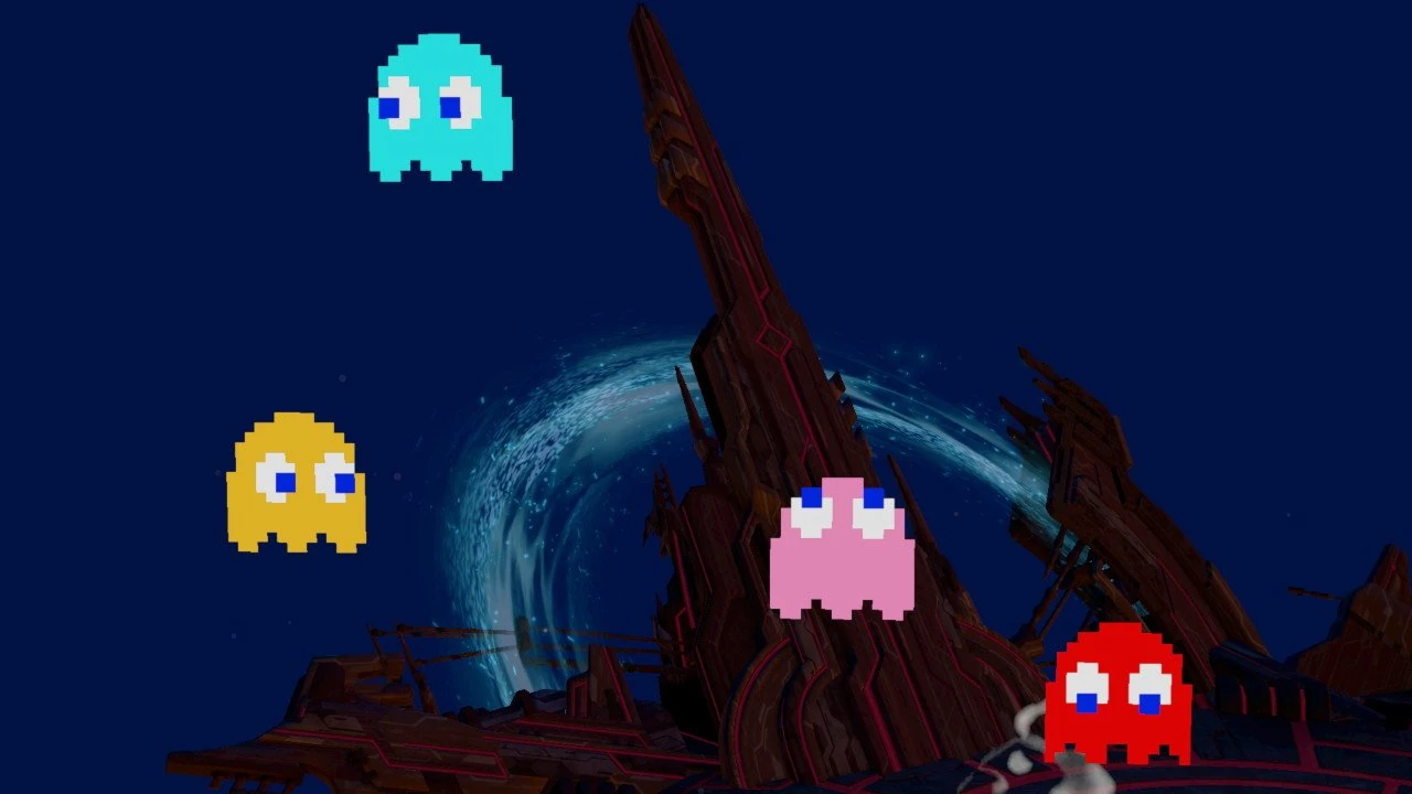 Blinky being spawned from Pac-Man in Super Smash Bros. Ultimate