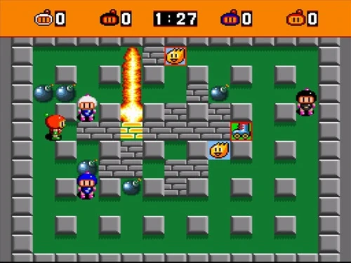 Like the other Bombermen, he has the ability to create bombs. In his home series, the Bombermen battle by setting bombs which then explode into cross patterns. These can not only attack opponents, but also break barriers and crates which contain powerups. They can also get caught in the blast themselves.