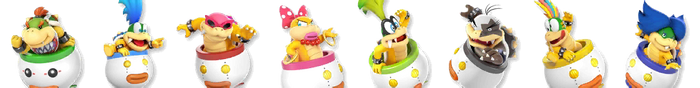 - Bowser Jr. and the Koopalings are the only characters with legs who don't fight on the ground, as they fight in the Junior Clown Car.
