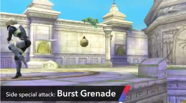 Burst Grenade is Sheik's Side Special Move in Super Smash Bros. for Nintendo 3DS and Wii U and Super Smash Bros. Ultimate. Sheik throws a grenade, and after a while she will pull the pin, making it explode.