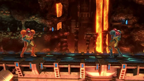 If she didn't start out with it, the Charge Beam (as it is aptly called in all Metroid games, due to it being one, unlike in the Super Smash Bros. series, where it is depicted as a progressively larger ball of energy) was one of the first power-ups Samus would get in the Metroid games, starting with Super Metroid. A fully charged Beam's shot would become Samus' only way of damaging certain bosses should she run out of Missiles. In Metroid Prime, Charge Beams can be used to clear debris blocking Samus' path, or to suck in nearby Energy Balls and Ammo Energy, as well as being the starting point for Charge Combos such as with the Super Missile making a flamethrower. In none of these situations, Samus can save a charge for later as is done in the Super Smash Bros. series, though she can continue charging for any length of time (up to a limit) and just hold it (effectively working the same way) as well as begin charging while in motion or in the air, and charging much faster.
