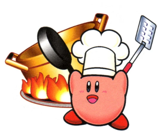 The move is based on Kirby's Cook ability from Kirby Super Star and Kirby & The Amazing Mirror. While not able to damage bosses like other one-time-use powers, it was able to suck in all minor enemies that are on-screen to turn them into healing food items.