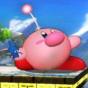 Olimar's large nose and helmet antenna | Pikmin Pluck/Pikmin Throw | Since Pikmin are completely tied into Olimar's moveset, Kirby cannot use Pikmin Pluck correctly. Instead, he plucks a Pikmin and immediately throws it.The Pikmin hits opponents for minor damage and dies once it hits the ground. |