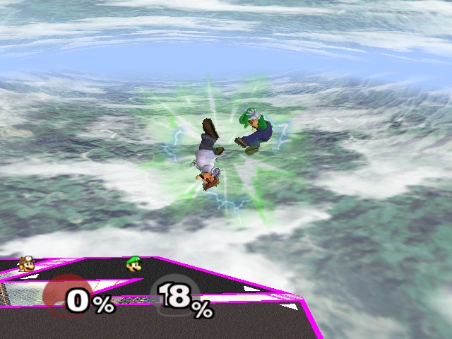 20% | Launches a somewhat short-ranged electrical shock from his palm. In comparison with Mario's, it has no sourspot and is quite stronger in both power and knockback. This attack can be aimed up or down. | |