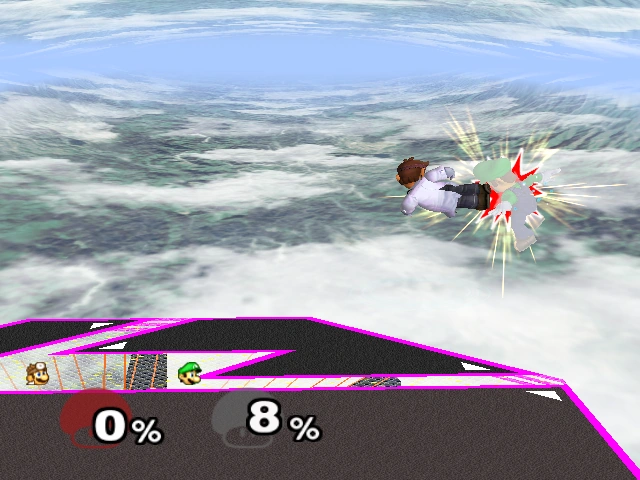 - His F-air is not a Meteor Smash like Mario's. It is, however, a strong fist move, similar to Ganondorf`s, except slightly stronger.