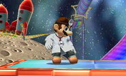 As for his Special Moves, they function much like Mario's. Megavitamin are exactly like Fireball, but travel slower, bounce higher in the air, and cannot be absorbed. Super Sheet covers more vertical distance than Mario's Cape, but at the cost of its potential as a recovery move, as it no longer stalls him in midair like it did in Melee. Dr. Tornado grants Dr. Mario extra distance when used properly, as well racking up easy damage and can also KO. Super Jump Punch is a quite potent move that KO at earlier percentages with rage, with high power at the base and a sourspot throughout the rest of its duration.