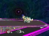 12% (clean), 9% (late) | Falco spins around at a diagonal angle while stick one foot downward, performing a downwards drill attack. A powerful spike that contains no sourspot, being one of the most feared attack in the game due to setting up combos and edge-guards. However, it is extremely risky to use off-stage due to Falco's awful vertical recovery. In the PAL version of the game, the second half of the attack produces weak horizontal knockback. | ||
