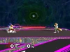 Falco Phantasm | 7% | Falco dashes forward and leaves behind an afterimage that launches anyone caught into the air. If Falco hits an opponent when using this move in midair, they will be meteor smashed with weak knockback. If the B button is quickly pressed again just after starting this move, it will be cancelled and Falco will not dash forward. This also stops him in midair. | |