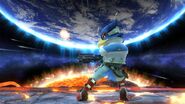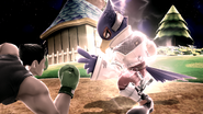 His Smash Attacks have considerable lag, but are nonetheless useful. Forward Smash covers good range, and is his strongest Smash Attack and finisher, specially if sweetspotted at the tip of his hands. Up Smash is a two hit move that deals considerable knockback, and has transcending priority during the first hit. Down Smash covers a decent range, while dealing horizontal knockback, making it useful for edge-guarding and punishing rolls; it also has transcending priority during a short time right before the attack is finished.