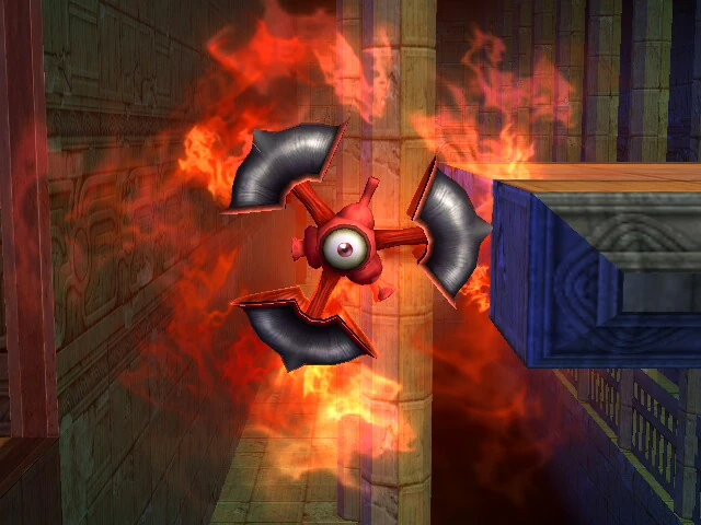A Glice moves by rolling along floors, walls, and ceilings, although they will fall down if they flinch. When approached by a fighter, a Glire stops moving and opens its three sectors to shoot out fire around it. A Glire's attack hits only once, so shielding it creates a large lag time in which to attack it. Glires are vulnerable to ice-elemental attacks.