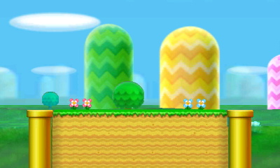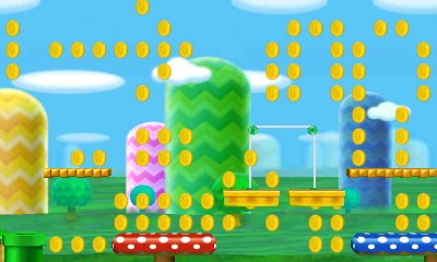 The middle area of the stage appears to be based on World 1-1 of New Super Mario Bros. 2, the left section resembling World 1-3, and the right portion appears to be based on World 1-4.