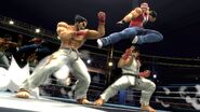 - The unique camera panning that occurs before Kazuya battles himself and afterwards against Ryu in the gameplay section is meant to mimic a similar camera movement that occurs every time before a match begins in Tekken.