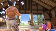 - During the gameplay section, a brief overhead shot features Kazuya and King K. Rool about to punch each other. This is meant to mimic the Bandai Namco logo animation in Tekken 7 for the TEKKEN PROJECT development team featured in the game's start-up and promotional material; in this context, King K. Rool is meant to be Jin Kazama.