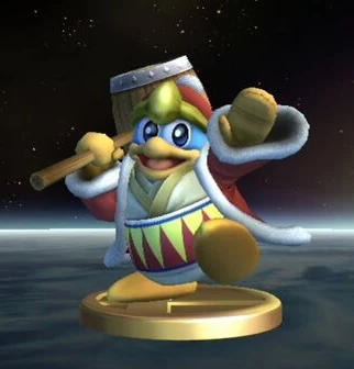 King Dedede makes an appearance as one of the 200+ collectible trophies in the game that can be found by "typical" means—either through the Trophy Lottery or picking it up during one of the single-player Regular Matches. Its trophy reads like so:
