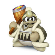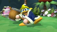 Side Taunt: Dedede spins his hammer facing horizontally while laughing.