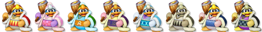 King Dedede, also known as simply Dedede (デデデ, Dedede), is a playable character and a returning veteran in Super Smash Bros. for Nintendo 3DS and Wii U. He was announced on January 10th, 2014, to commemorate the release of Kirby: Triple Deluxe in Japan.