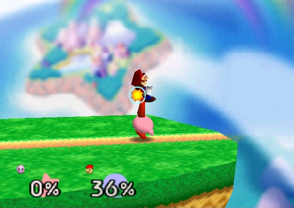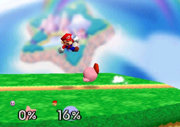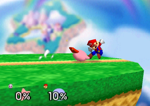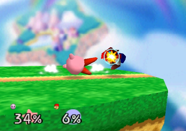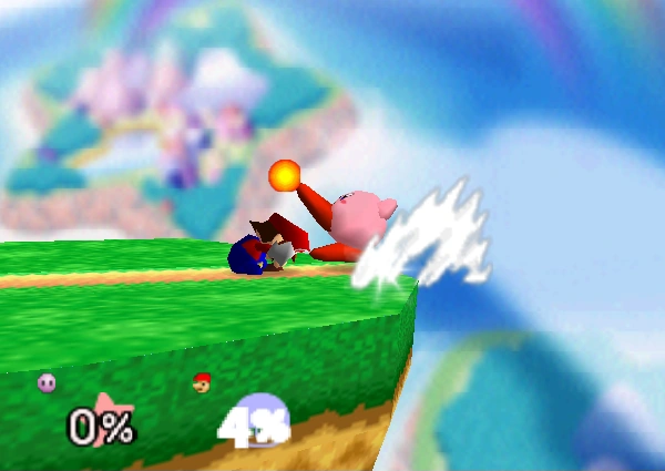 12-16% (clean), 9-12% (late) | Kirby performs a reverse dropkick attack that deals solid damage. A useful move for edge-guarding. | ||