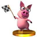 A mysterious pig from Donkey Kong Country Returns, he helps out if you're having trouble. He brings in a blue-tied, silver Donkey Kong to show you how to beat the harder parts. But who is this pig anyway? He actually prefers to go by...Professor Chops!