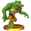 This guy is to Donkey Kong what Bowser is to Mario. This crowned Kremling has a serious attitude problem. If only he could have been one of DK's Animal Friends instead... Maybe with just a little change of heart, he still could be! On second thoughts...nope. Never gonna happen.